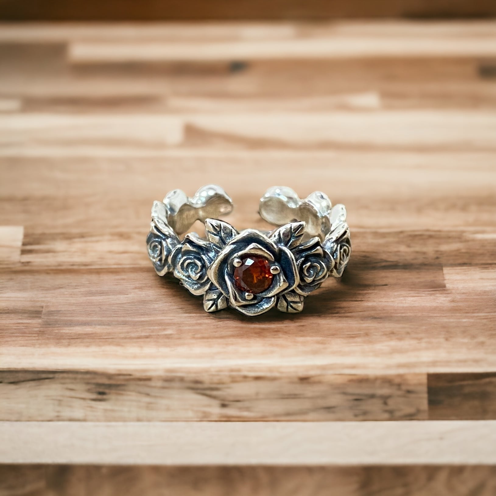 存在感たっぷりのシルバー925製デザインリング、バラの花をモチーフにした洗練されたデザインが特徴です。